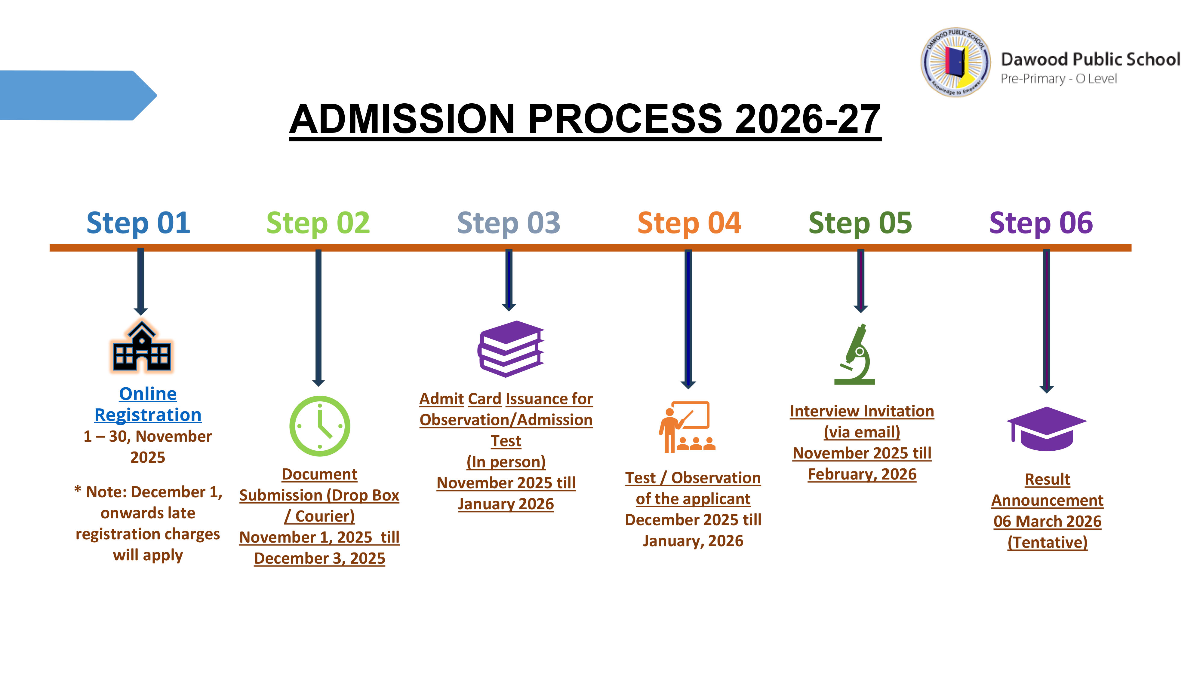 For further queries, kindly contact us at 021-38403588 Ext 810 and 834, 0301-8226390 from Monday to Friday between 9:00 a.m. to 3:00 p.m. You can also email us your query at admissions@dps.edu.pk